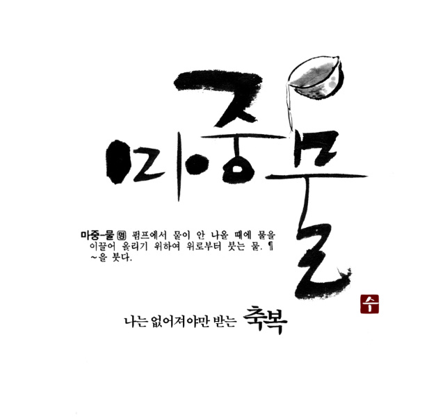 예인님 저도 캘리 부탁드려도 될까요? zenith 일반 0 5579 2009.05.11 23:19 매번 보기만 하다가 용기내서 초면에 부탁드립니다. 지역에 조그만 어머니 모임 명함에 들어갈 로고체구요 작지만 의미있는 모임이라 이쁘게 만들어 드리고 싶어서요. "마중맘"이라고 써주시면 될것 같습니다 마중물이란 순우리말에서 만드셨다고 하네요 샘플 하나 올려드리겠습니다 부탁드립니다