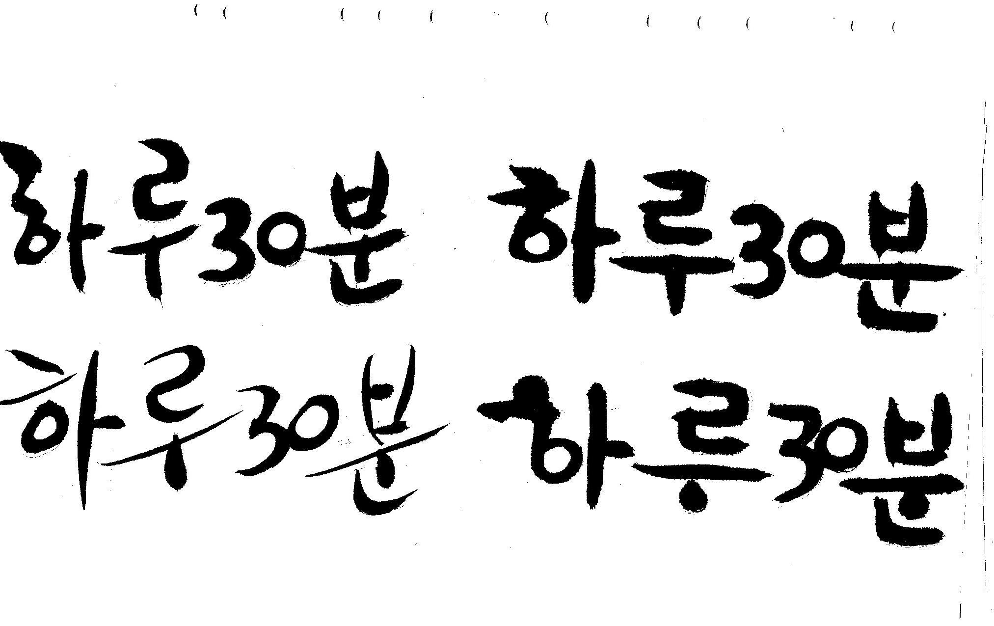 캘리부탁드려요 김철호 일반 0 6831 2008.12.31 13:43 > > 하루30분 <------- 이걸 캘리로 부탁드립니다 > 희망찬 새해 되세요... 스캔이 삐딱하게 되어 손좀 보셔야겠네요..